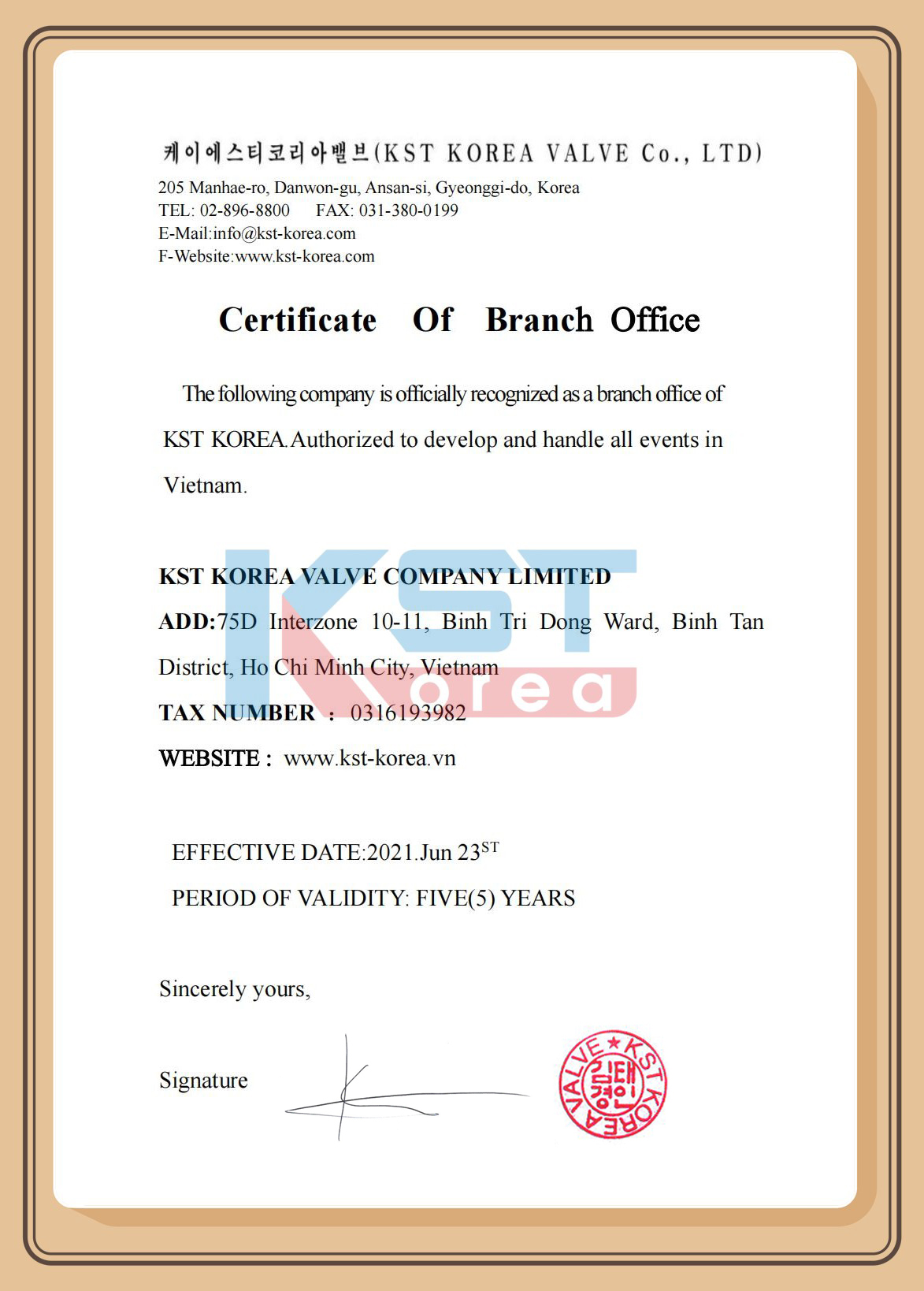 저희 해외사업법인 케이에스티코리아밸브에서 베트남 호치민에 지사 설립을 완료 했습니다.