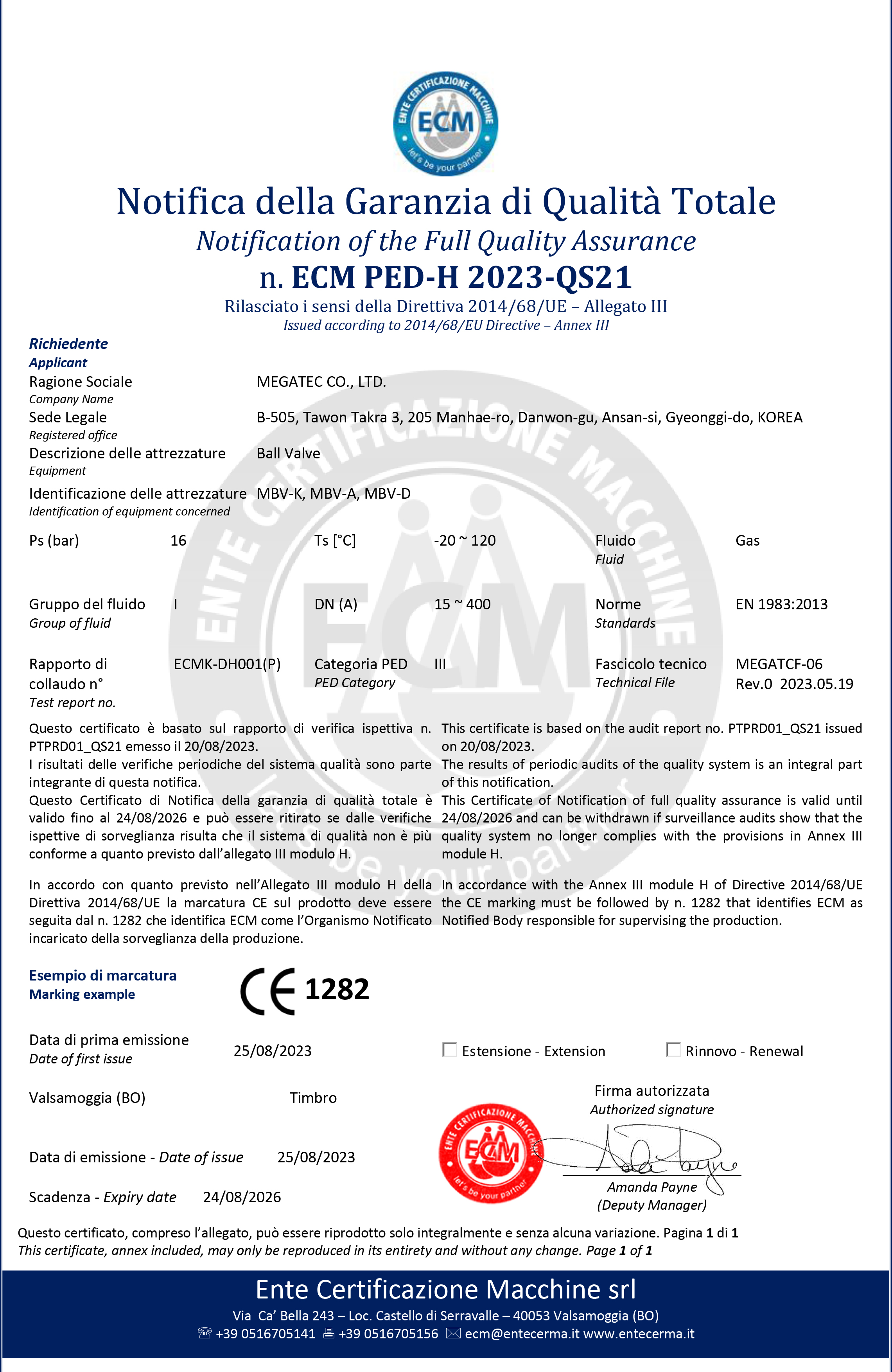 제목 : 공압 구동기 / BALL VALVE (FLANGE TYPE) CE 인증 획득