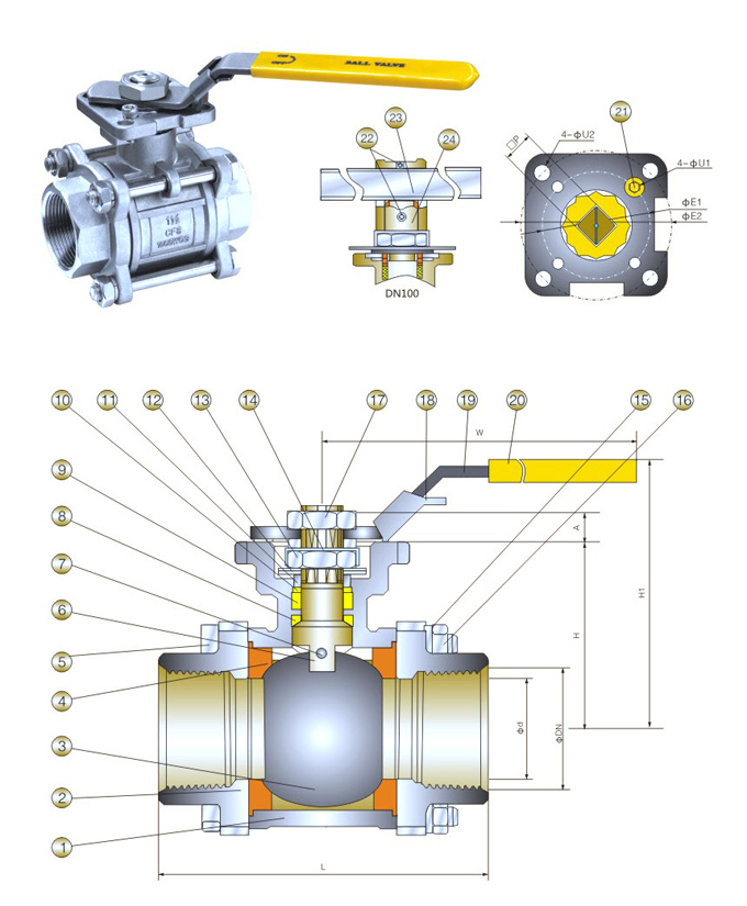 3PC 나사용 자동용 BALL VALVE (MODEL : KST-025)