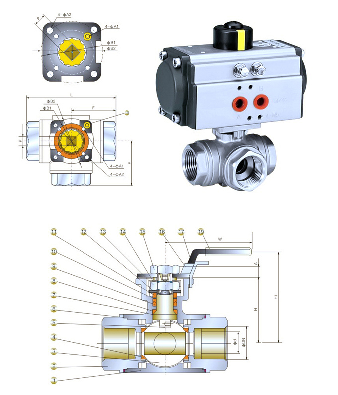 3-WAY 나사식 자동용 BALL VALVE (MODEL : KST-027)
