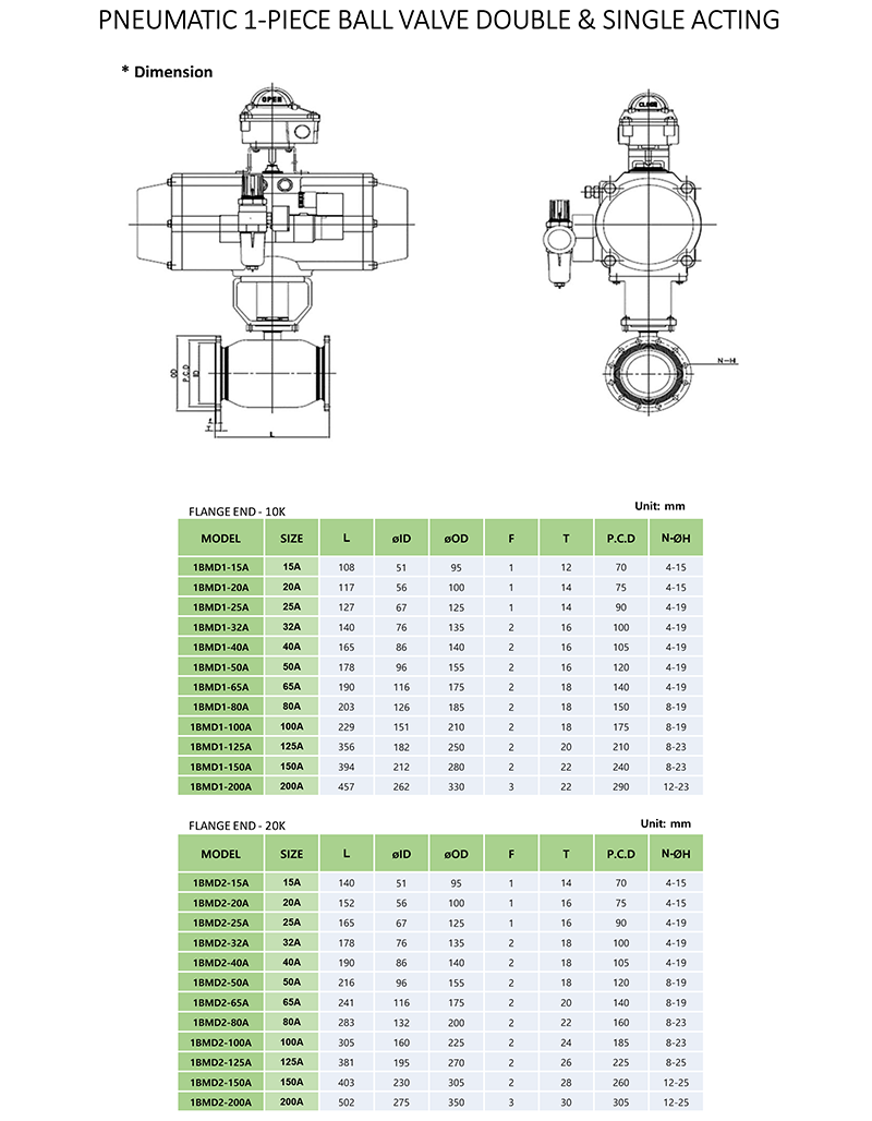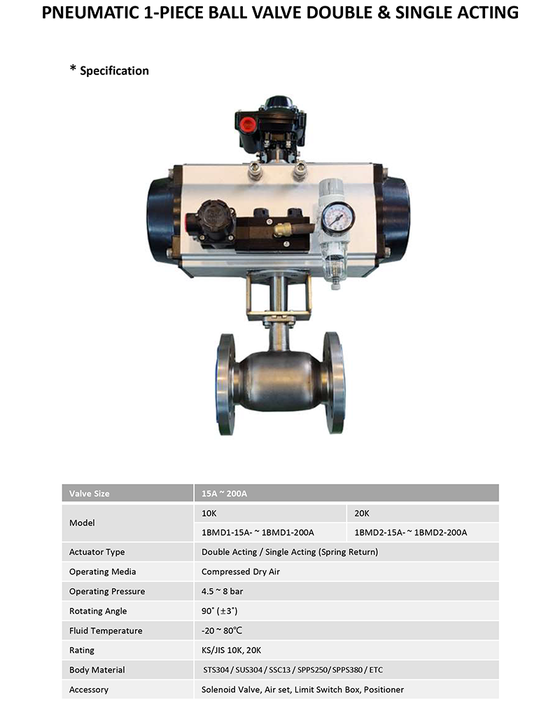 PNEUMATIC 1-PIECE BALL VALVE FLANGE