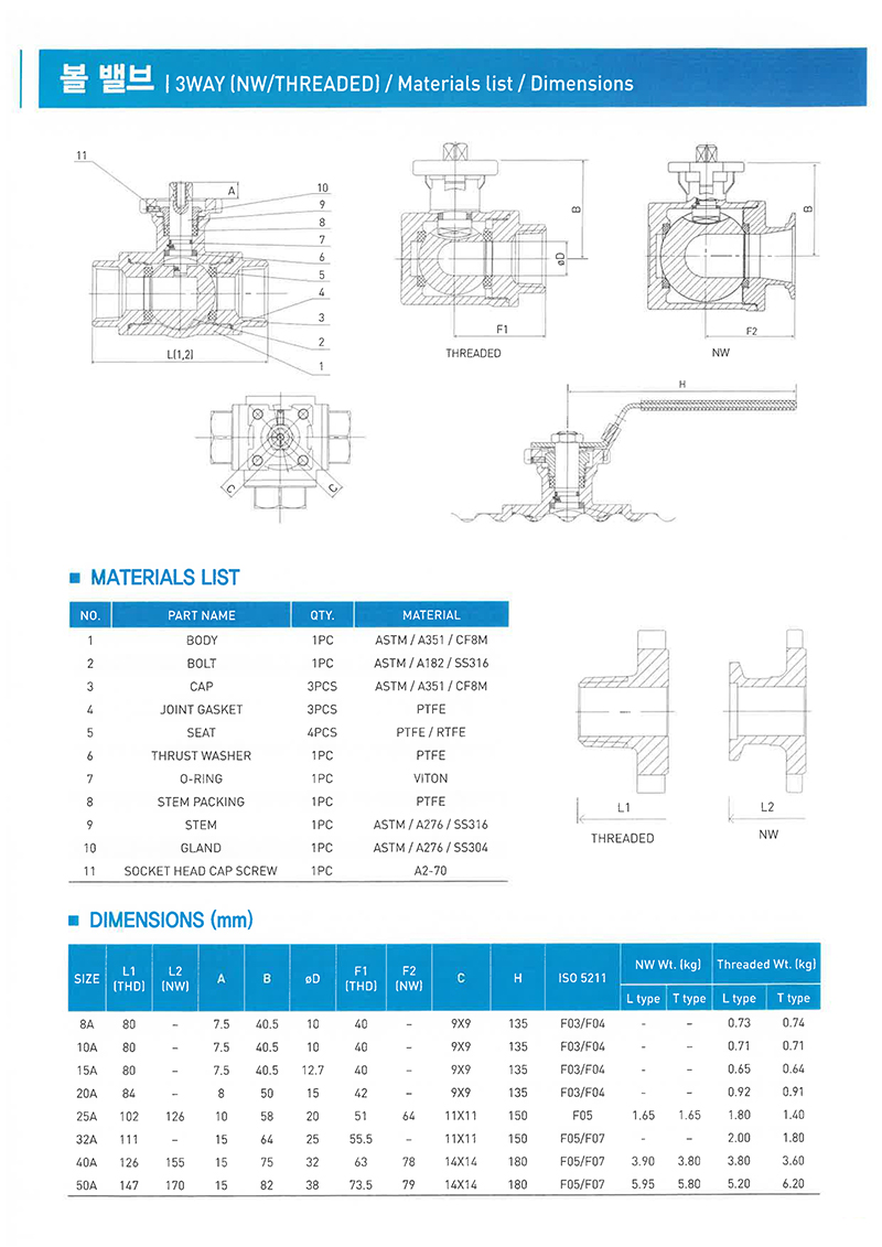 3PCS NW 자동용 BALL VALVE